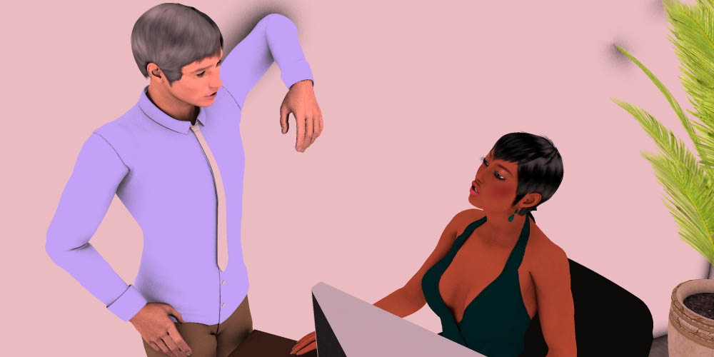 Having finished up his authorizations and signing purchase orders he comes out of his office and walks casually up to Judy's desk.