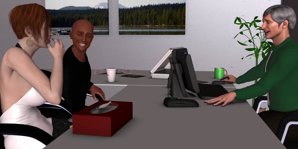 Luxana: Really, they said that? Barry: Man, that feels so good, so damn good, but it was Luxana's idea, she deserves the credit. Luxana: Hold on Barry, my mother basically gave me the idea and I used John's research on neuron density and distribution and nobody except you, Doctor Fambrough, could have made those adjustments so quickly and so well. You even corrected a faulty data point in my EMRI tests, so shut up, we're a team. John: I love you guys, but you didn't let me finish, they go on to say, "All the representatives of all the member nation of the Global Health Agency in conjunction with the executive branch of your own government have agreed to honor you all with the GHA Humanitarian Science Award." And get this, it's going to be presented by Doctor Harriet Seldon herself.